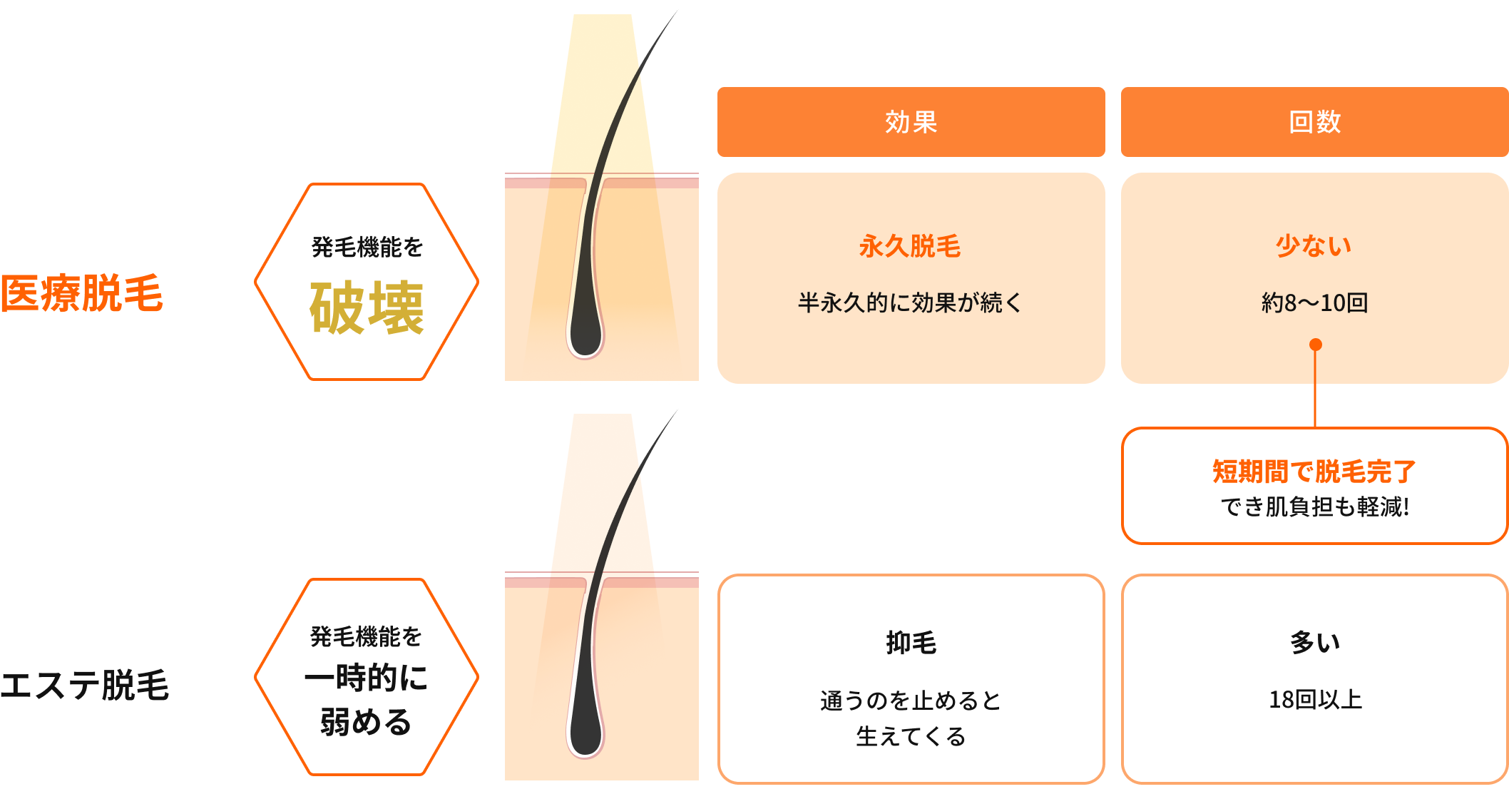 レジーナクリニックの「オーダーメイド脱毛」は1人1人の肌質×毛質×毛周期に合わせて照射可能です。また、患者様のご要望に合わせて、ジェントルマックスプロを含む熱破壊式、蓄熱式のレーザー脱毛機からお好きな機種を選択できます。