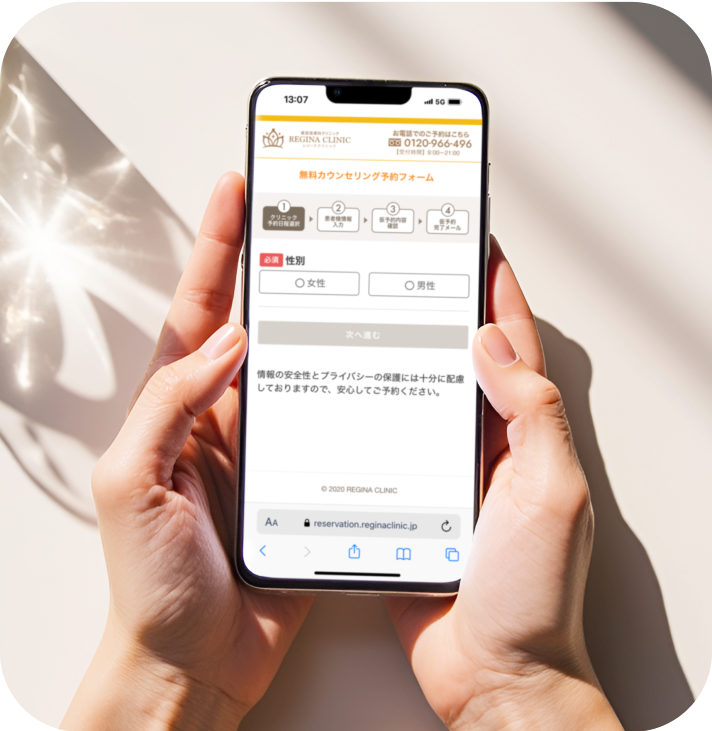 カウンセリングを受け、契約をご検討中の方は、通院を希望されるレジーナクリニック各院へご連絡いただき、ご契約のお手続きをお願いいたします。