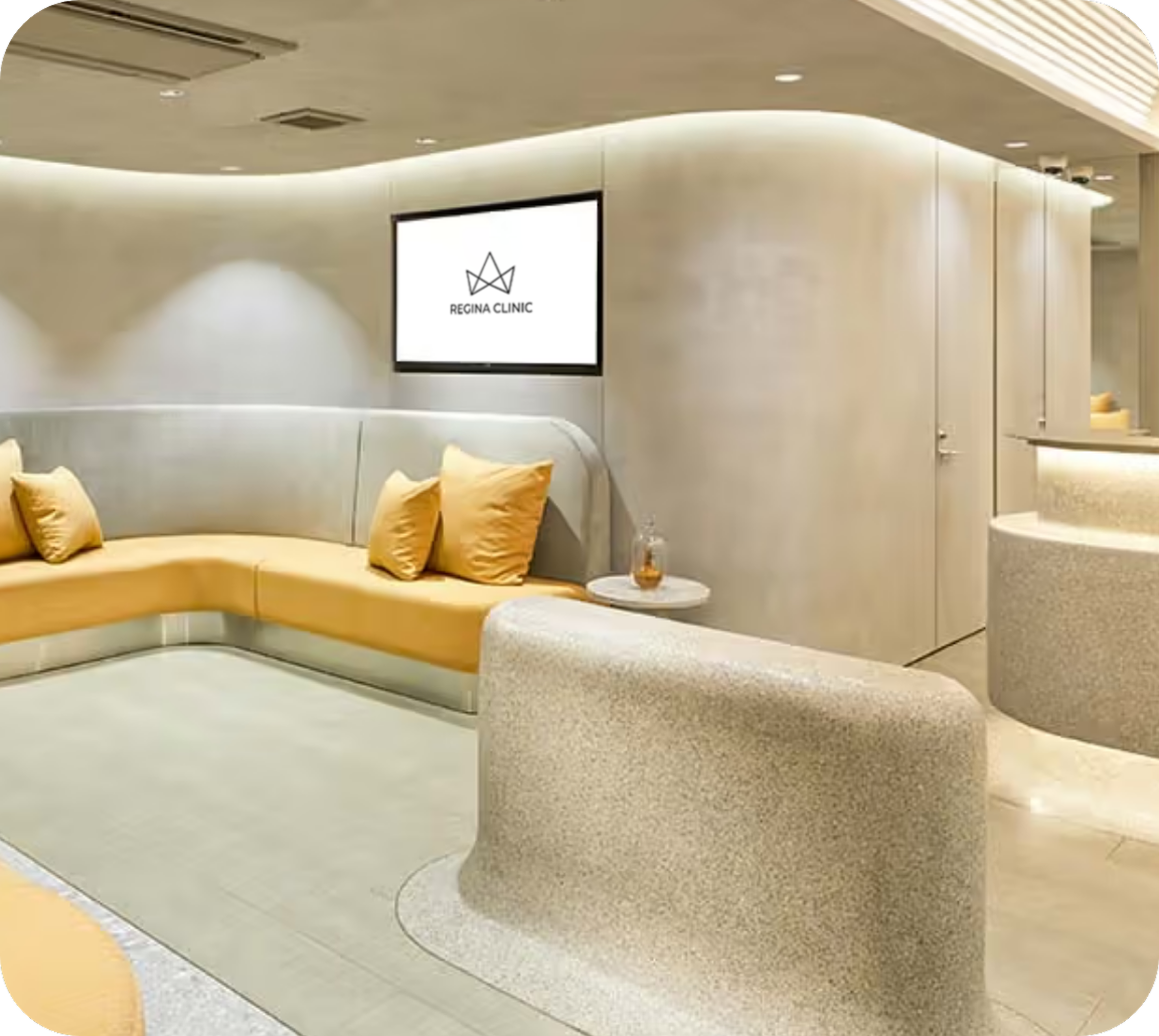 全国展開、全院駅近のレジーナクリニックでは女性が非日常を感じられる居心地の良い空間づくりにこだわっています。