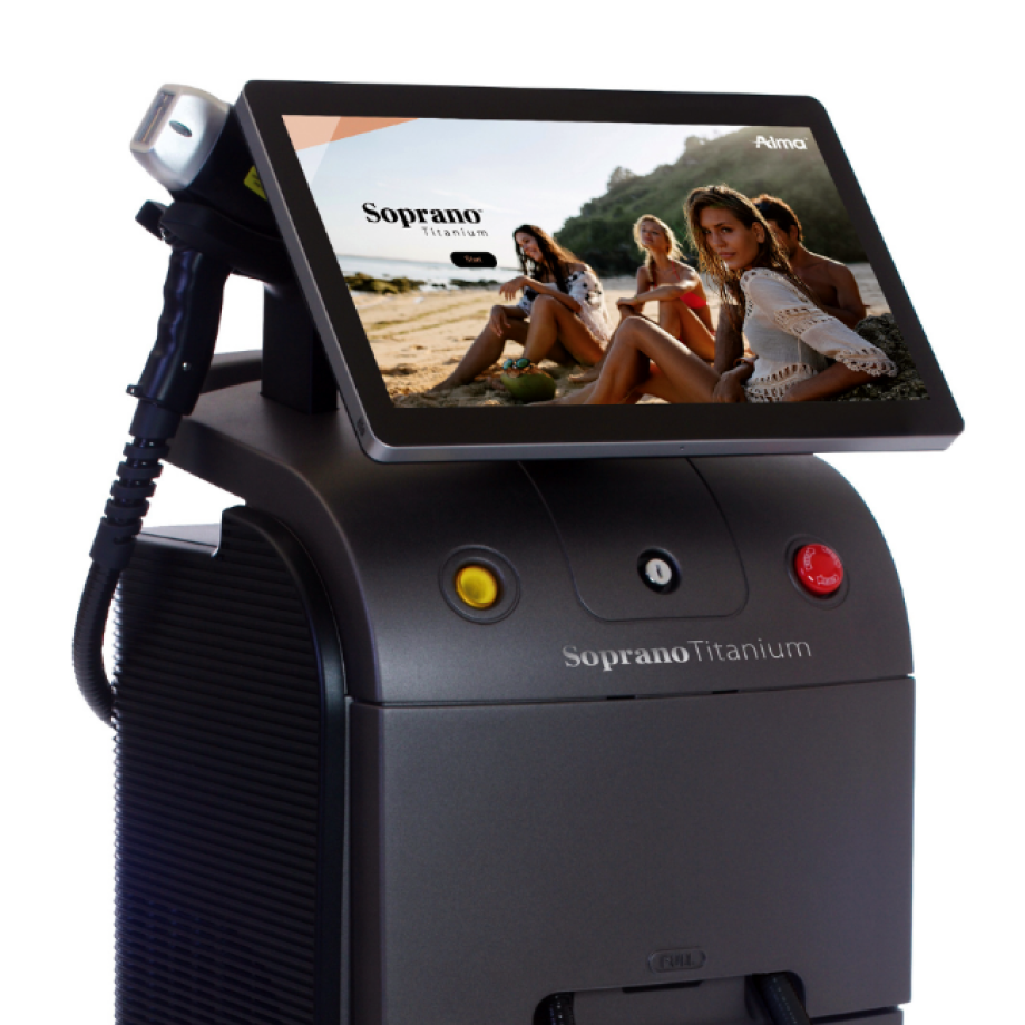 ソプラノチタニウムは、3つの波長のレーザーを同時に照射できる蓄熱式ダイオードレーザー脱毛機です。幅広い毛質や肌質への照射に対応しているほか、従来の機種より施術効率が向上し、約2倍のスピードでの施術が可能になりました。