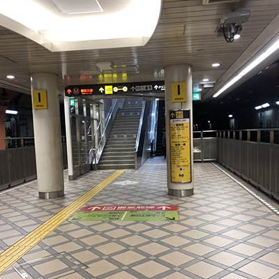 ❶四ツ橋駅に着いたら、ホーム北側のA階段への通路をお進みください。 -