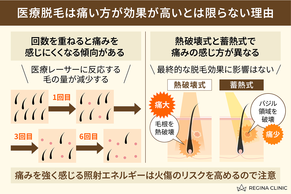 医療脱毛は痛みが強い方が効果を感じやすいというわけではありません。