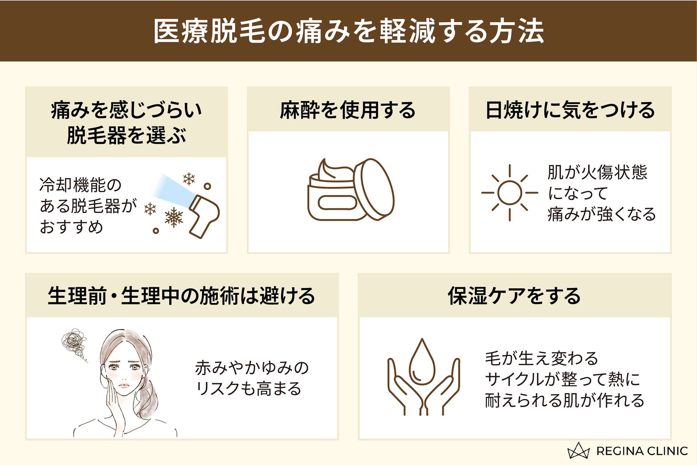 医療脱毛の痛みを軽減する方法は、以下の通りです。