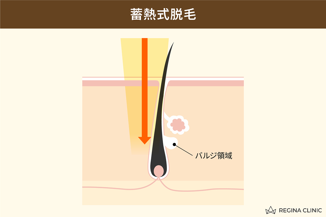 特に蓄熱式ダイオードレーザーは、毛根に栄養を供給するバルジ領域に徐々に熱を与える方法で、肌の色や色素沈着に影響されず、比較的安全に脱毛が可能です。