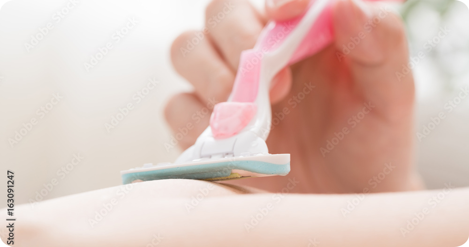 レジーナクリニックでは、患者さまに肌へ負担がかかりにくい電気シェーバーを使って毛を処理いただくようにお願いしています。